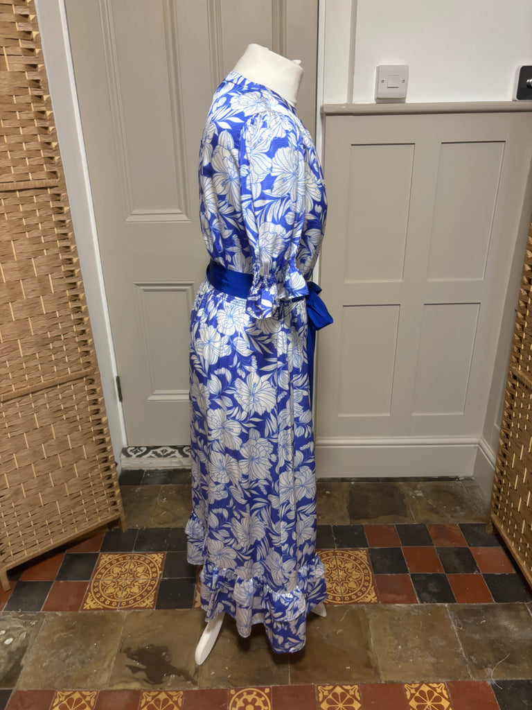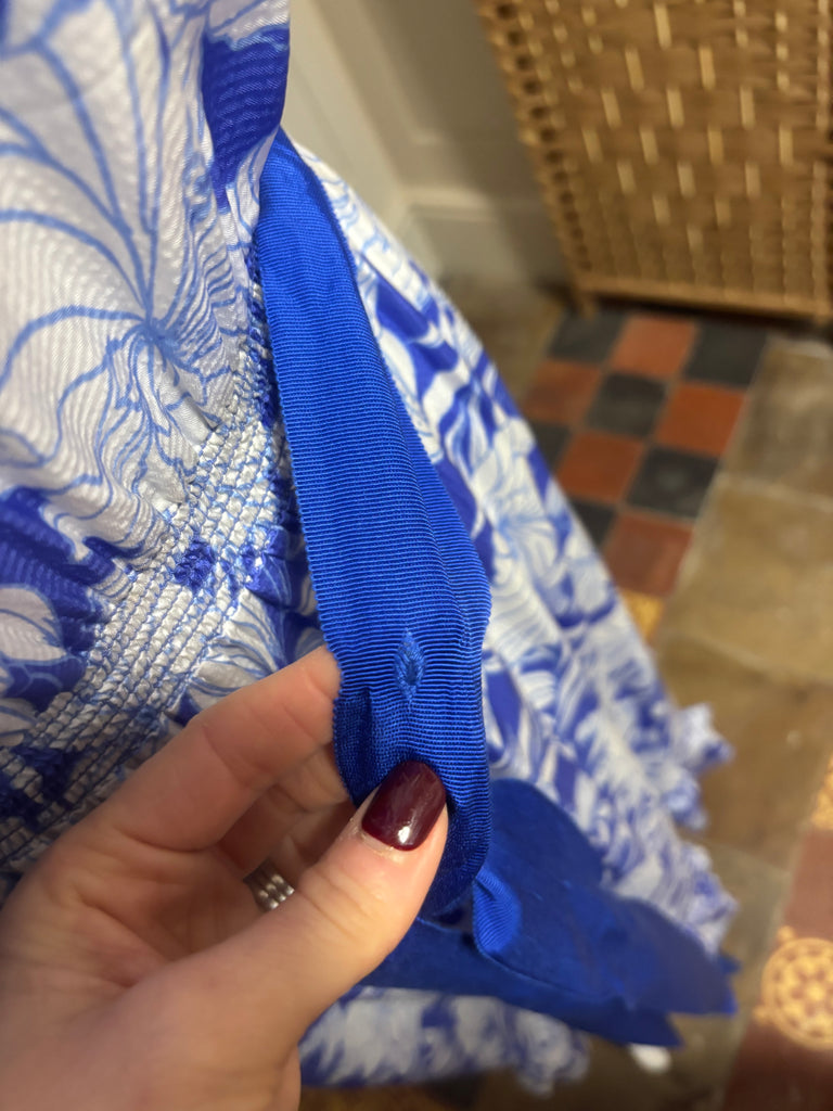 Worn once in perfect condition Size S Midi length One tiny default that can’t be seen when the belt is tied. I pinned the bow in place and it has left a small mark as shown in pictures Belt is detachable