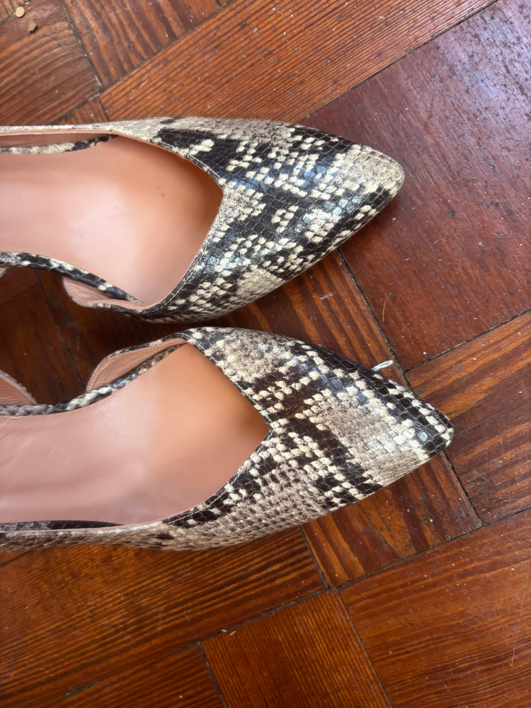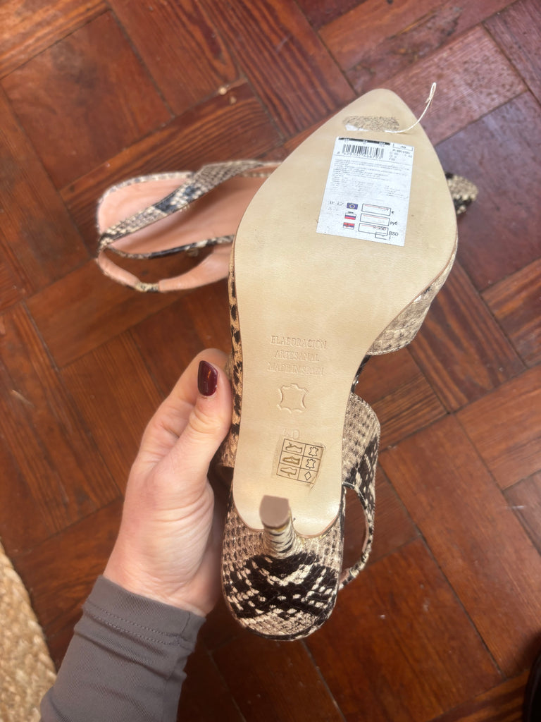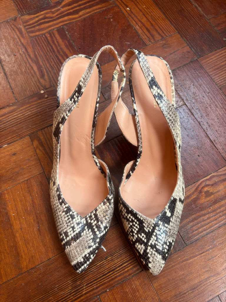Snake print sling backs