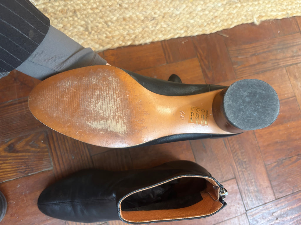 Black soft buttery leather ankle boots